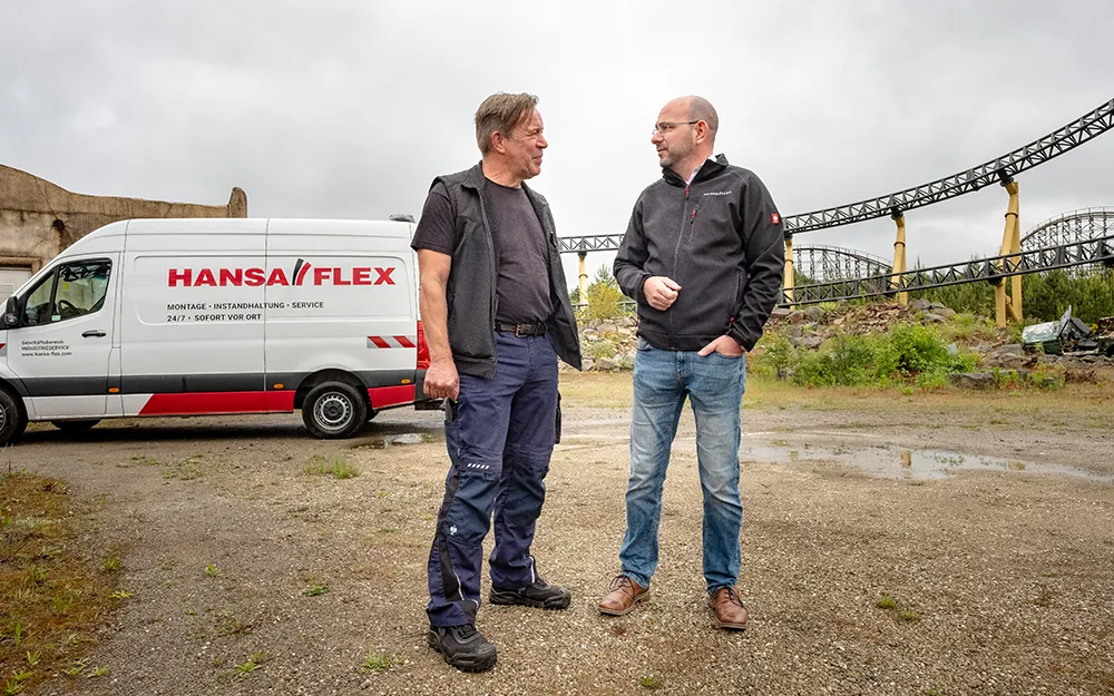 “海德公园度假村将如此激动人心且关乎安全的设施交由我们负责,我们深感自豪",HANSA-FLEX的销售代表斯蒂芬·托贝这样总结双方的合作伙伴关系。伯克特别赞赏合作带来的全面产品与服务:“HANSA-FLEX是我们重要的系统合作伙伴。我拥有一位主要联系人,可以咨询所有液压相关事宜。" 目前,HANSA-FLEX正在为游乐园检修一个三级伸缩缸——该缸体在完全收缩状态下长度已超过6米。合作之旅始终充满挑战!